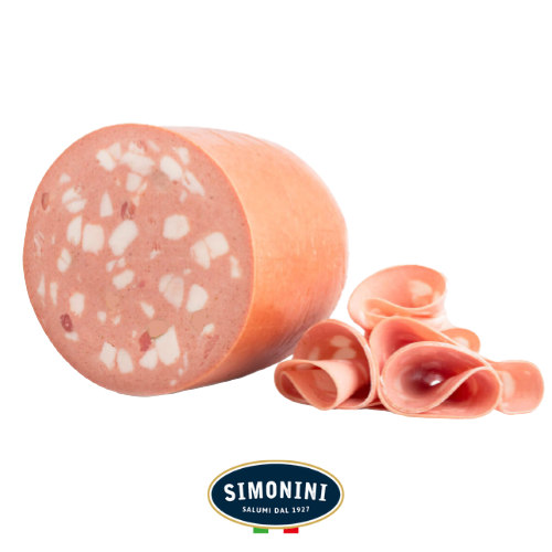 ortadella prodotta secondo la ricetta originaria di Bologna, che beneficia del riconoscimento IGP. Presenta una consistenza vellutata e un gusto caratteristico e fragrante. Disponibile nella versione con e senza pistacchi.