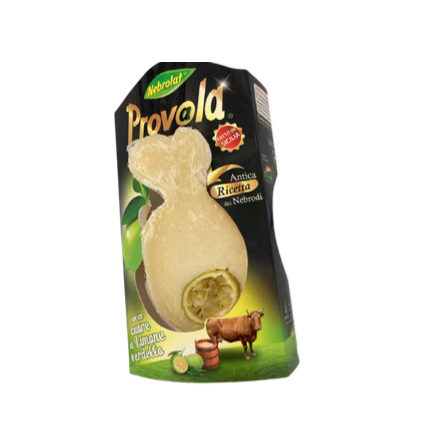 Half caciocavallo cheese matured with a special type of Sicilian lemon inside it, called verdello lemon. It has an aromatic and particular taste due to lemon notes.